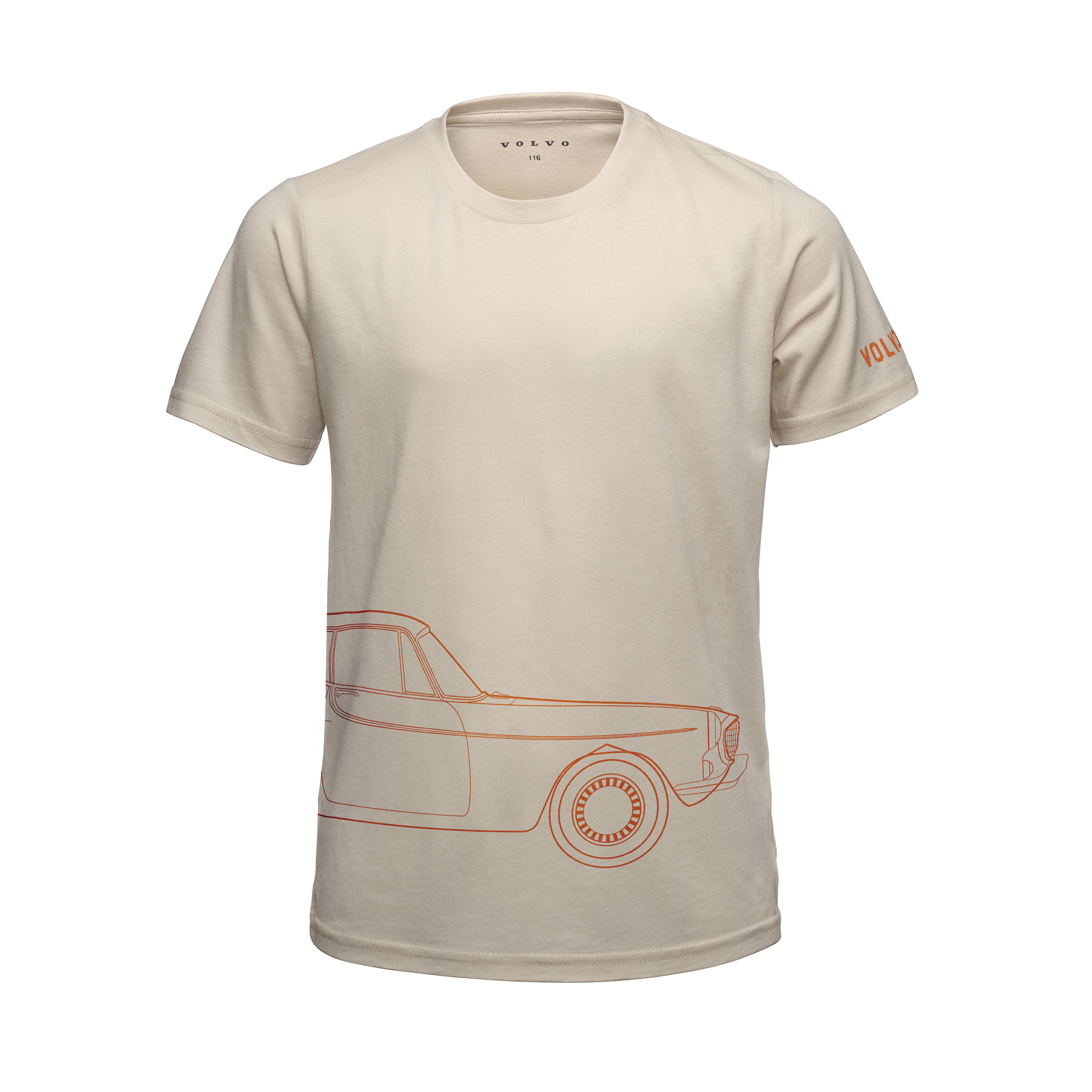 Esta t-shirt infantil elegante e divertida é feita a partir de uma confortável e sustentável mistura de bambu/algodão. O design apresenta uma grande impressão envolvente do clássico Volvo P1800 em laranja e o logotipo da Volvo no ombro esquerdo. Os tamanhos variam de acordo com a altura da criança: 104cm, 116cm, 128cm, 140cm.