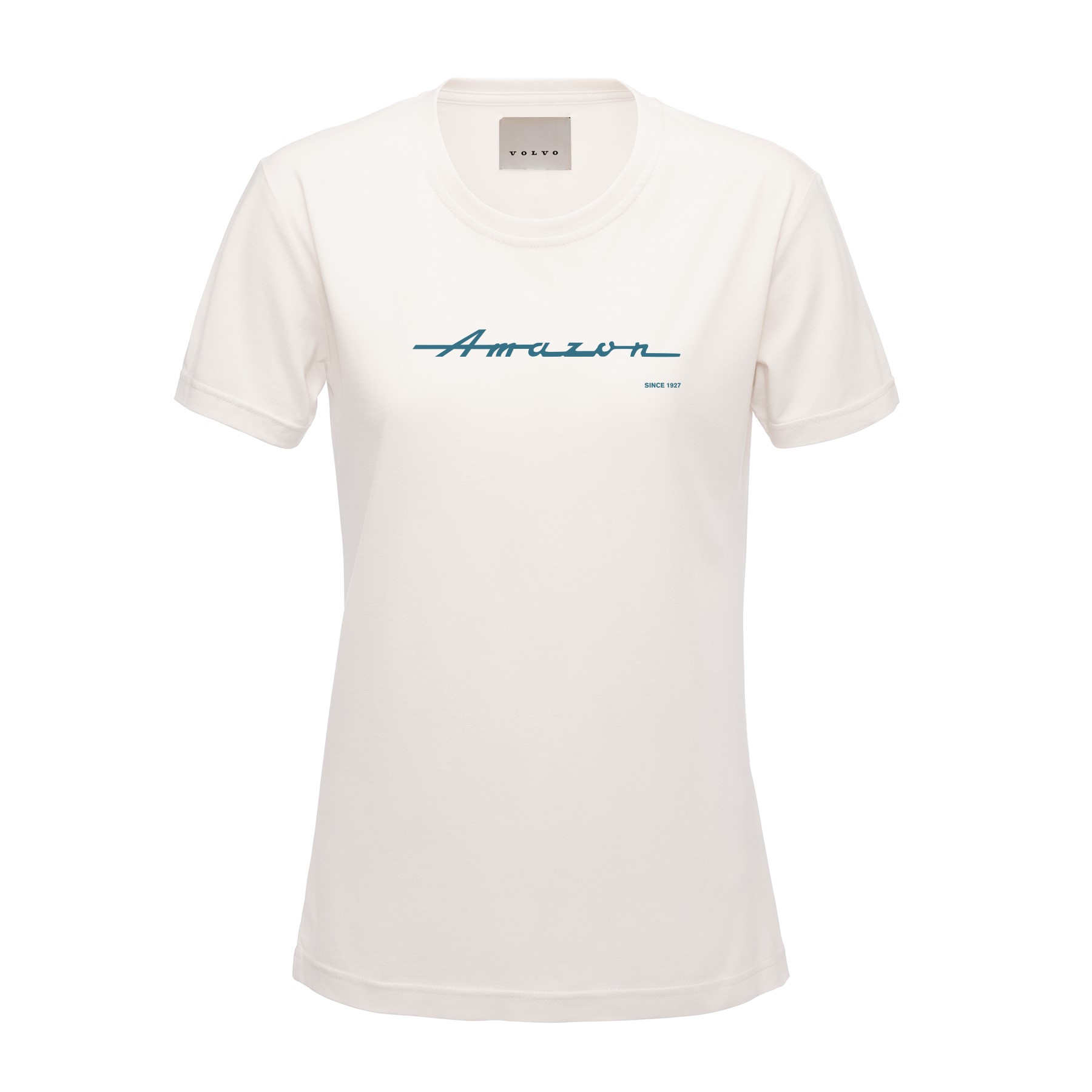 Uma homenagem cheia de estilo a um clássico atemporal da Volvo. Esta camiseta apresenta o emblema do icônico Volvo Amazon, bem como o logotipo da Volvo. Ele vem em Off White e é feito de uma mistura confortável e sustentável de 67% de liocel e 33% de algodão.