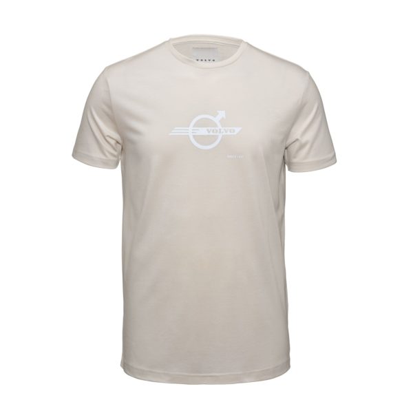 Na Volvo Cars, gostamos de celebrar nossa herança – mas também pensamos no futuro. Esta elegante camiseta cor de areia apresenta o clássico logotipo retro da Volvo e é feita com uma mistura de 67% de liocel e 33% de algodão, pelo que é confortável e sustentável.