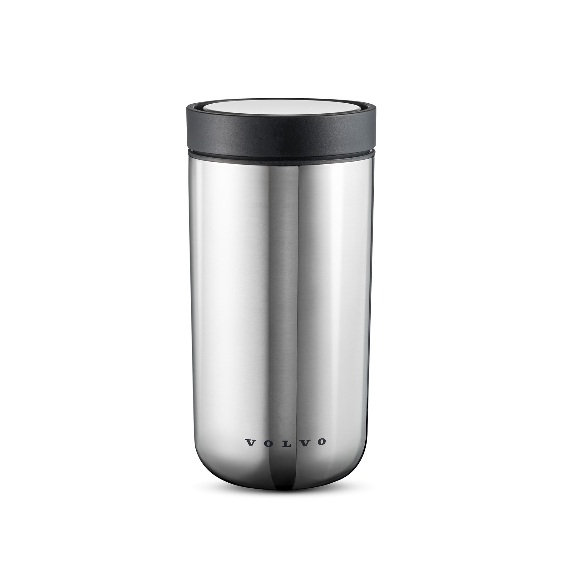 Leve suas bebidas quentes ou frias com este copo de aço inoxidável, com o nome da marca Volvo em relevo, com uma tampa 360 graus que permite que você beba de qualquer lado. Com capacidade para 400ml, possui uma função simples de clicar para abrir ou fechar e vem com uma guarnição prateada. Não pode ser lavado na máquina de lavar louça.